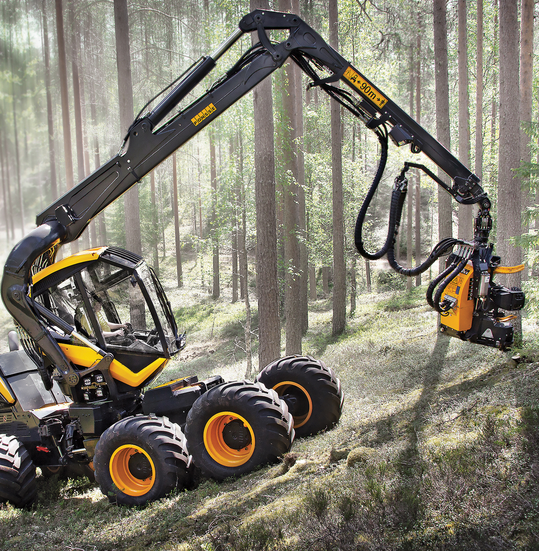 Form and functionality are merged in this forest machine into a highly impressive unity. All elements are carefully matched to lend this type of work machine an entirely new appearance. Showcasing a well thought-out operator environment, the harvester offers a high degree of ergonomics and safety. A particularly innovative solution has been realised in the cabin that gives the operator a good all-round vision at all times.