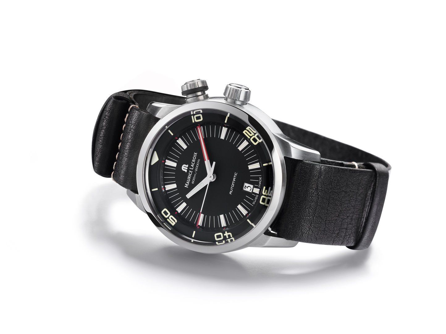 The Pontos S Diver is water-resistant to a depth of 600 metres. As one would expect of a professional diving watch, it is equipped with an automatic helium escape valve. The stainless-steel casing of the watch has a diameter of 43 mm. The black dial is equipped with a Superluminova-coated bezel, hands and indices. In addition, the minute and second hands are outlined in red. A date display rounds off the features of the watch. The Pontos S Diver functions with the help of a self-winding mechanical movement and has a 38-hour power reserve.