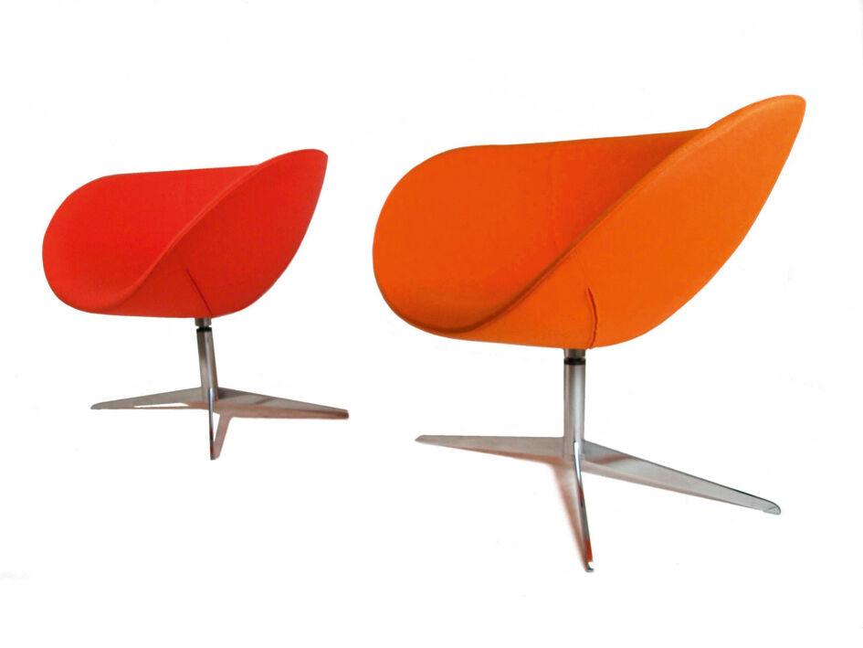 As its name suggests, the Poppy armchair takes its inspiration from the invitingly shaped petals of the poppy flower, which so majestically dominates fields with its glowing colour. This elegant, timeless armchair is eminently suitable for public areas such as waiting rooms or lounges, as well as for private homes. The shell is made of injected flame-retardant polyurethane foam and is equipped with a swivel and automatic return mechanism. It is supported by a central column set on a cross-shaped foot in chrome-plated steel. A large selection of fabrics and leathers are available.