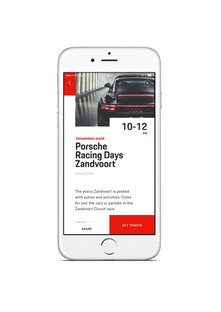Porsche24 is a loyalty programme for all Porsche drivers in the Netherlands – a programme that rewards driving rather than spending. The app keeps track of the kilometres that users drive, the trainings they have completed and the events they have visited, rewarding them with special badges and attractive privileges. Following a gamification approach, drivers need to reach different levels to get access to these awards. Inspired by classic Porsche pins, the badges are collected in a gallery, with placeholders indicating which badges a user is still missing.