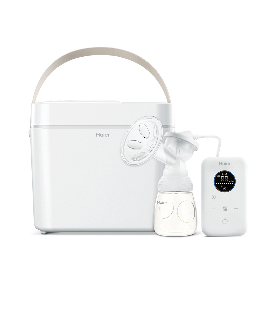 This breast pump includes a comprehensive range of accessories such as a bottle, a blue cool box for safely storing breast milk or a bottle for sterilisation. Its unpretentious design focuses on ease of use, which is reflected by a clearly structured operator panel. The convenient storage option furnished with a handle, which provides sufficient space for all parts, also ensures a high level of comfort.