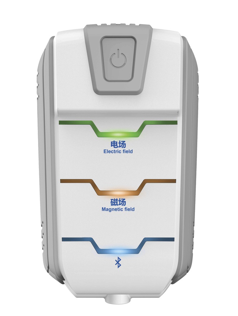 The detector adopts a power frequency magnetic field and electric probe unibody design. It uses lithium batteries and monitors data via Bluetooth wireless transmission to the mobile phone APP, and data management in the APP. The internal structure is highly coordinated, with the circuit board and exterior design reducing the volume by 2/3.