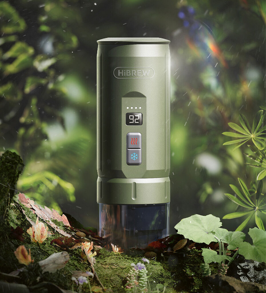 With its moss-green colour and a housing that conveys robustness and performance, this coffee maker was unmistakably designed for use on the go – when hiking or camping, for instance. It can be used with capsules as well as with ground coffee, with the user being able to choose between hot and cold drinks. An easy-to-read temperature display shows the waiting times. The removable lithium battery can be quickly replaced, which increases readiness for use.