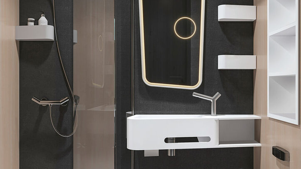 The Portal washbasin has been designed particularly for public toilets in hotels, nightclubs and shopping centres. The objective is to combine a mirror, basin and light arc into a design that is functional, aesthetic and inspiring all at the same time. Intentionally created to look almost like a portal, the generously dimensioned mirror is illuminated from all sides and acts as a frame for the expressively curved washbasin. The resulting futuristic ambience is aimed to appeal to the selfie generation, and thus also serves as a marketing tool.