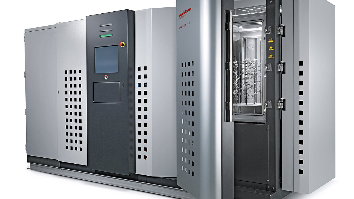 The PPD coating system for the surface treatment of large industrial tools is based on the proprietary Pulsed Plasma Diffusion (PPD) method, which is an alternative to hard chrome plating. It provides effective and economical-friendly protection of tools against wear and tear. The round shape of the processing chamber is emphasised by the casing fashioned from anodised aluminium or powder-coated normal steel. The lower edge is formed by the ribbed fan casing made of powder-coated aluminium.
