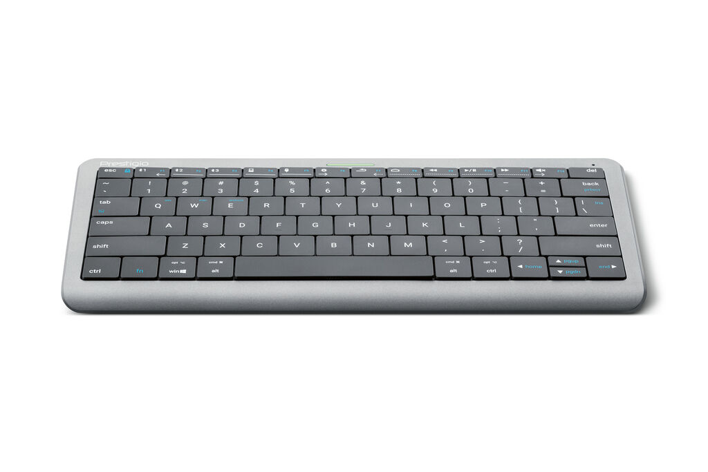 Prestigio Click&Touch combines a keyboard, touchpad and mouse in one product with the appearance of a keyboard. The smart device based on TouchOnKeys technology detects whether the user is typing or rather using the surface for scrolling, swiping or cursor control. It then seamlessly switches to the appropriate mode. Up to five devices can be connected to Prestigio Click&Touch simultaneously, including smart TVs.