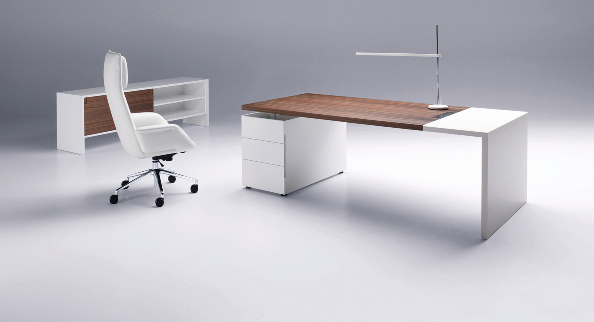 This high-quality, executive furniture collection targets the management sector. It consciously relinquishes steel frames and is almost completely made of wood. Striking contrasts are achieved by the combination of lacquer and veneer surfaces.