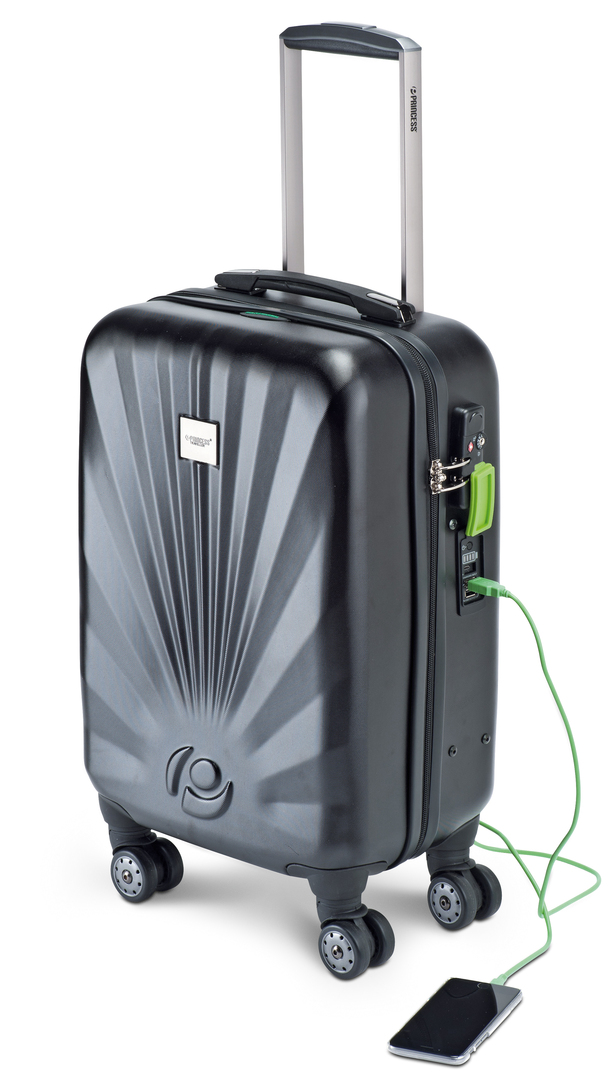 This suitcase contains a built-in charging station to supply mobile phones or tablets with power any time, anywhere. As soon as increased use on long journeys has drained the battery power, devices can be connected individually or simultaneously. Once the so-called Power Box in the 100 per cent recyclable suitcase has provided sufficient charge, the connected devices have enough power to run for up to seven hours.