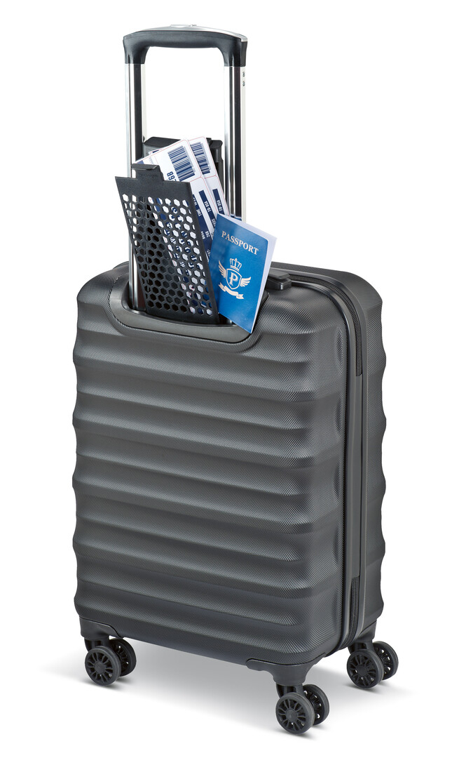 The luggage collection is characterised by the innovative idea of a special holder for safe storage and easy access to important documents.
