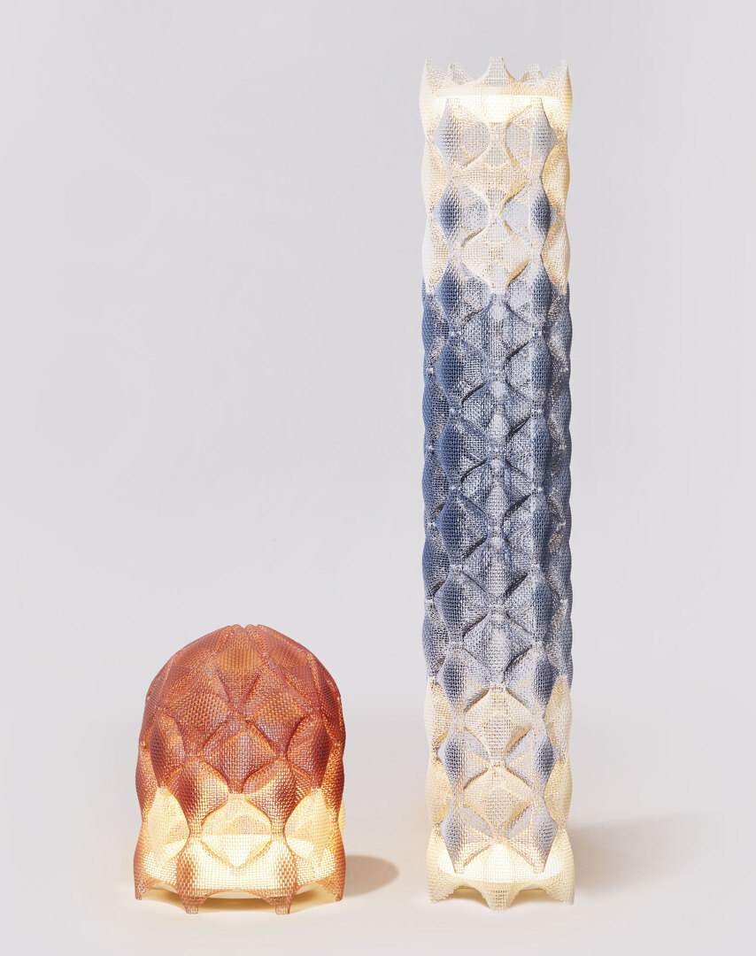Prinx is a modular lighting fixture that employs auxetic structures and varying thicknesses to provide precise control over the deformation of module pieces. It uses 3D printing techniques and structures to challenge traditional fused deposition modelling printing. The fixture is made up of three distinct modules, allowing for the creation of various forms and sculpture-like structures. Overall, Prinx exemplifies the potential of 3D printing to push the boundaries of design and engineering while showcasing the artistry and skill of its designers.