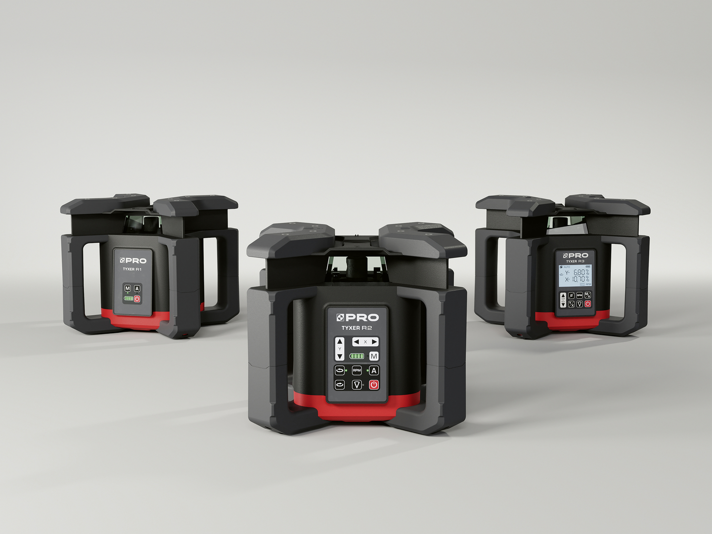 The coherent, robust design of the PRO TYXER R1, R2 and R3 Auto rotary lasers signals their eminent suitability for use on construction sites.