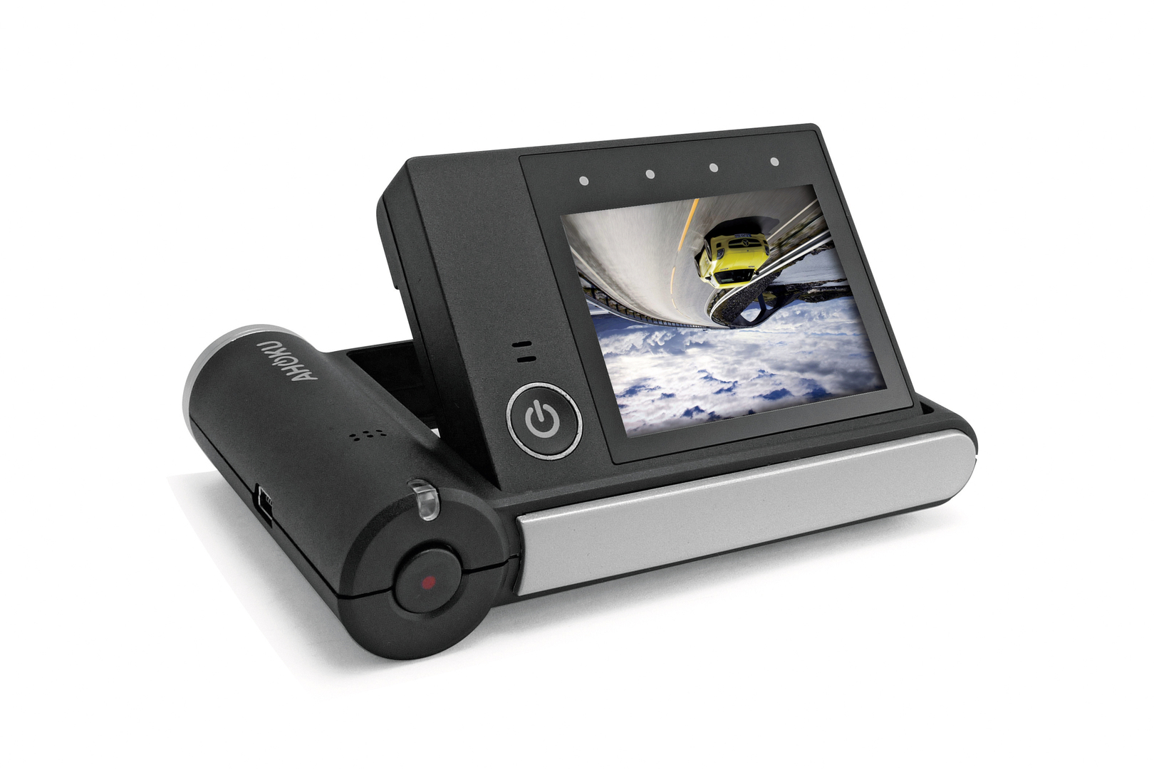 This dashcam convinces with its very slim, elegant housing and a full HD flip-screen monitor with touchpad control. The HD videos are made with a wide-angle lens. In case of a traffic accident, there is a built-in acceleration sensor for permanently saving the videos, thus preventing erasure by cycle recording. This function can also be activated manually by pressing the emergency button.