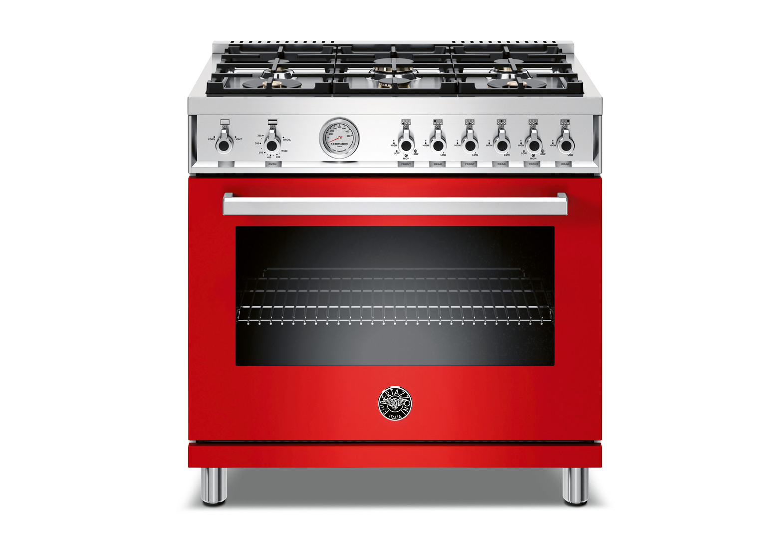 Its colouring lends this freestanding cooker a particular impact. With six gas-cooking zones and a high-volume oven, the Professional 36 Red also complies with professional demands.