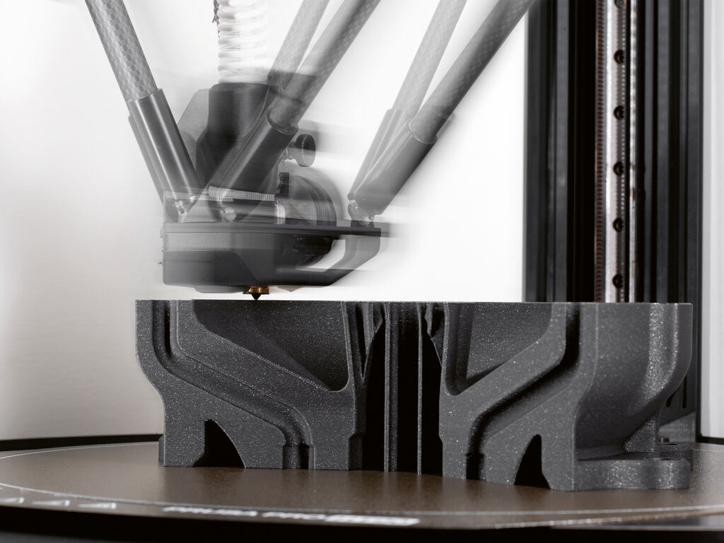 The Prusa Pro HT90 is a 3D printer with delta kinematics, designed for high-performance materials and rapid prototyping in industries such as aerospace and medical technology. Interchangeable print heads allow for the use of both standard and high-temperature materials, reaching up to 500 degrees centigrade. The heated chamber (up to 90 degrees centigrade) enhances layer adhesion and reduces warping. A flap system precisely controls cooling, while a HEPA filter purifies the air inside the chamber. The printer supports complete offline operation as well as remote management.
