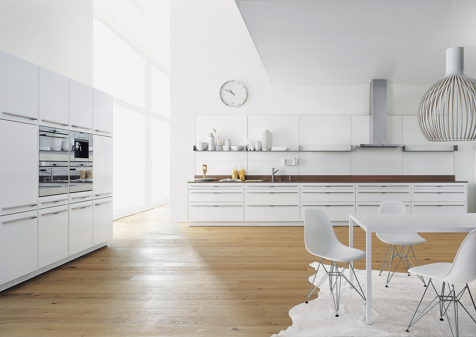This kitchen represents a puristic overall look. First, the viewer is surprised by the nature of the material but then convinced by its quality.