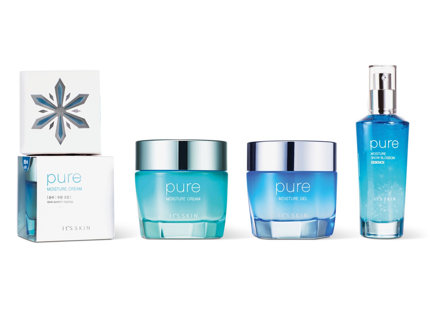The Alaskan glacial milk used as an ingredient in the Pure Moisture Cream skin-care series creates a moisturising film to make the skin soft and clear. The contour of the containers alludes to a glacier through atypical indents in the base. The transparent blue colour gradient is also a reminder of glacial ice and fosters a cool appeal. The outer case of the moisture line consists of a purist white double sleeve with a cut-out in the shape of an ice crystal on the lid. The sleek container made of clear PET material haptically conveys the cooling effect of the moisturiser.