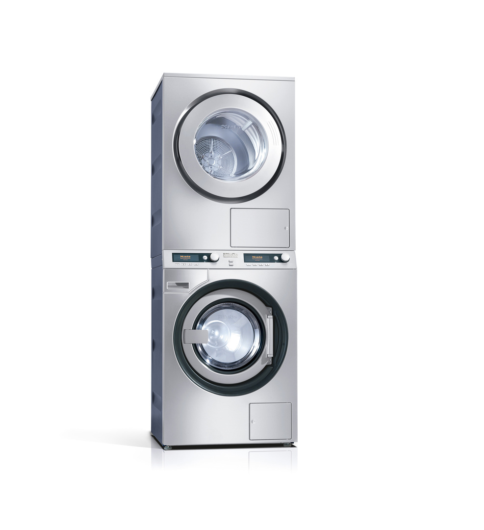 This commercial stackable washer and dryer unit is a space-saving solution adjusted to the needs of laundry operators. Changing staff can easily and accurately operate the ergonomically arranged, intuitive controls. Without having to carry the laundry, it can be dried right after washing, thus saving resources. The appliance combination achieves high operating efficiency; it is long-lasting and visually appealing.