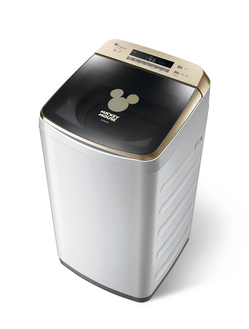 This washing machine is a space-saving product solution with a load capacity of 3 kg. The white housing of this top-loader stands in contrast to the gold-plated lid, which features a classic Mickey Mouse motif. The lid not only prevents water from splashing out but also has good thermal insulation qualities. An innovative security lock prevents children from opening the machine when it is in operation. Moreover, the Wi-Fi function allows users to control the appliance via smart phones.
