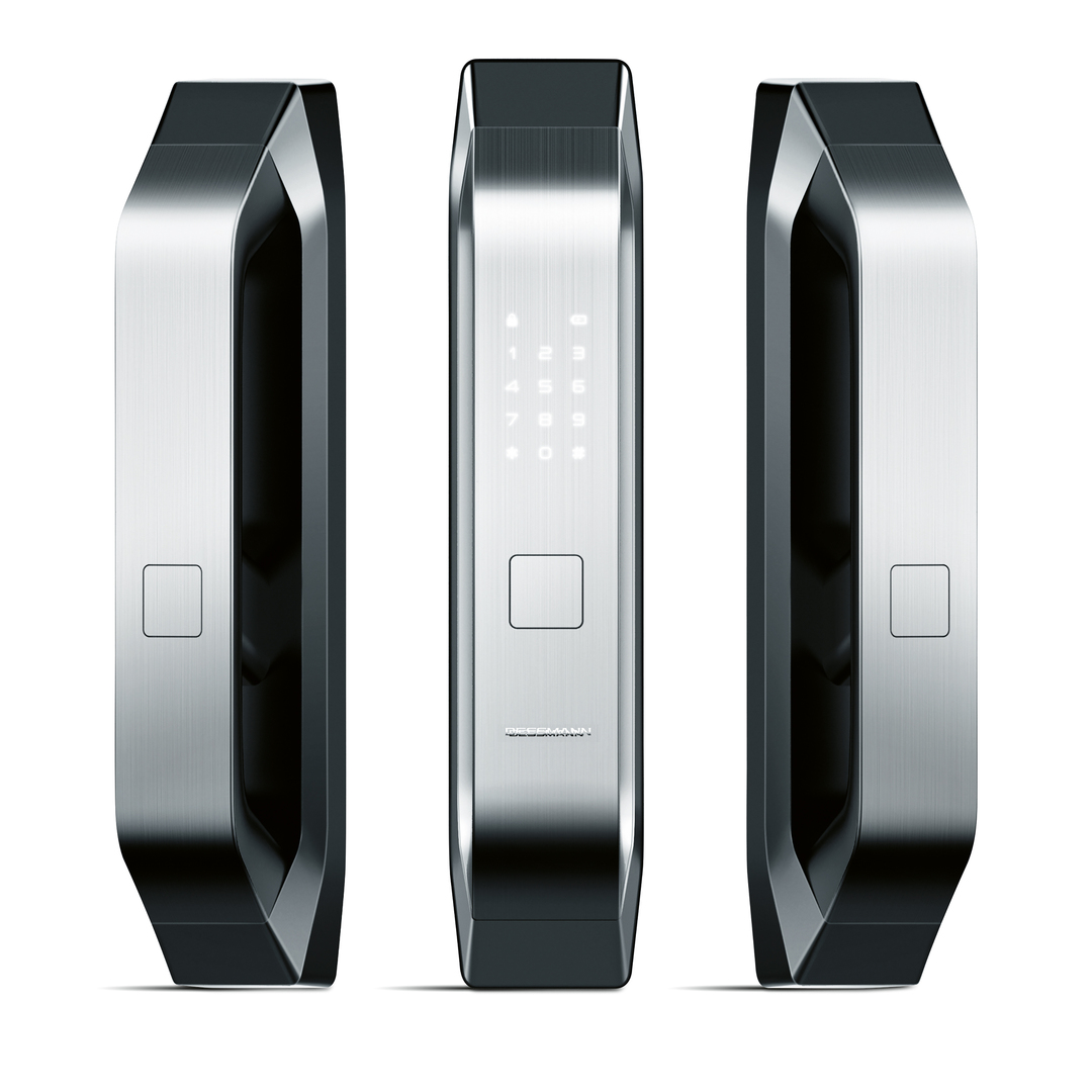 The design of the Q5 door lock is modelled on the futuristic aspects of concept cars. The lock is part of a smart home equipment kit and is activated by fingerprint. Door opening is simplified by an automatic process triggered by a slight push. Fingerprint recognition thereby takes less than half a second. The individual parts of the lock are made of a high-quality aluminium alloy and stainless steel. Their surfaces stand out for their smooth texture.