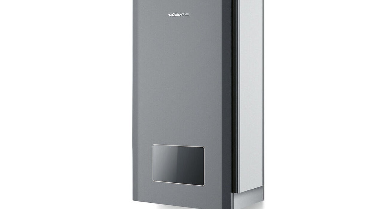 The minimalist design of this water heater hints at its uncomplicated handling. Another clever idea is the control panel serving as a stand.