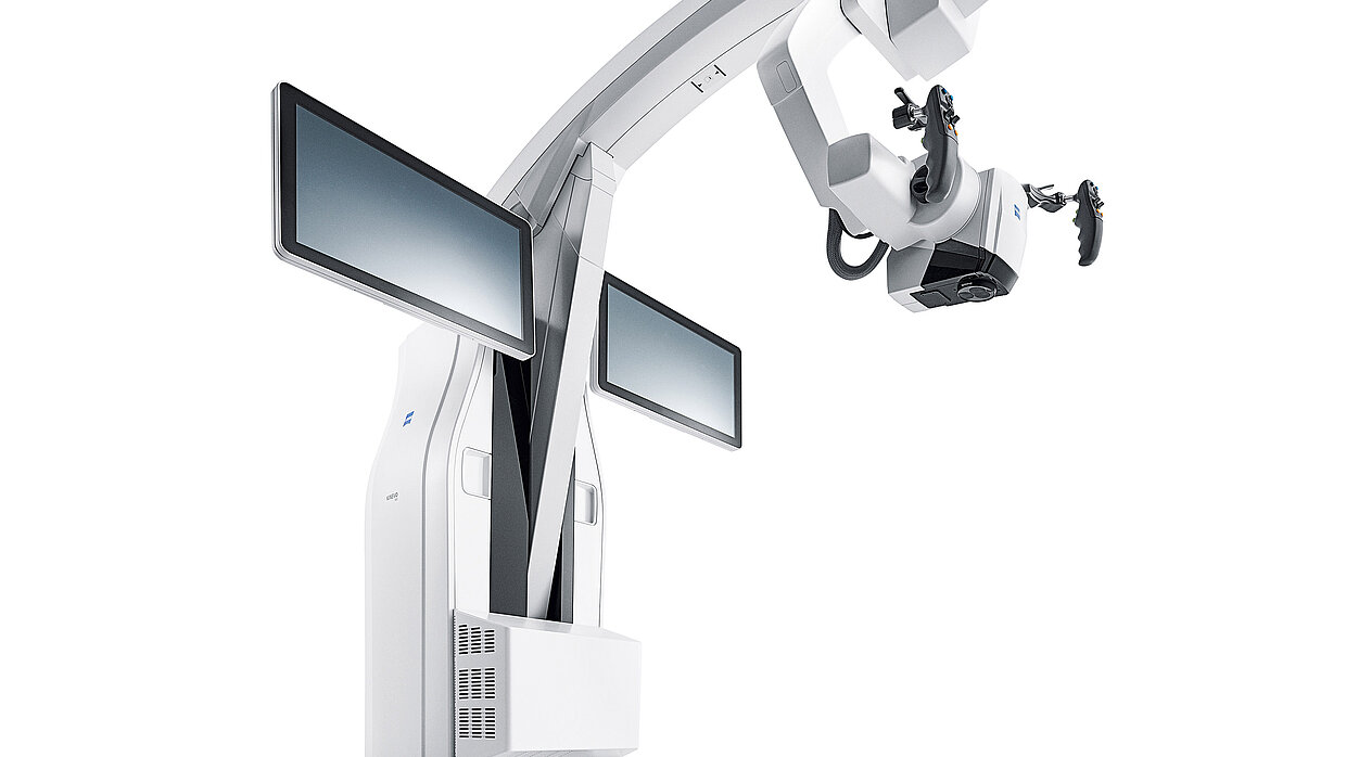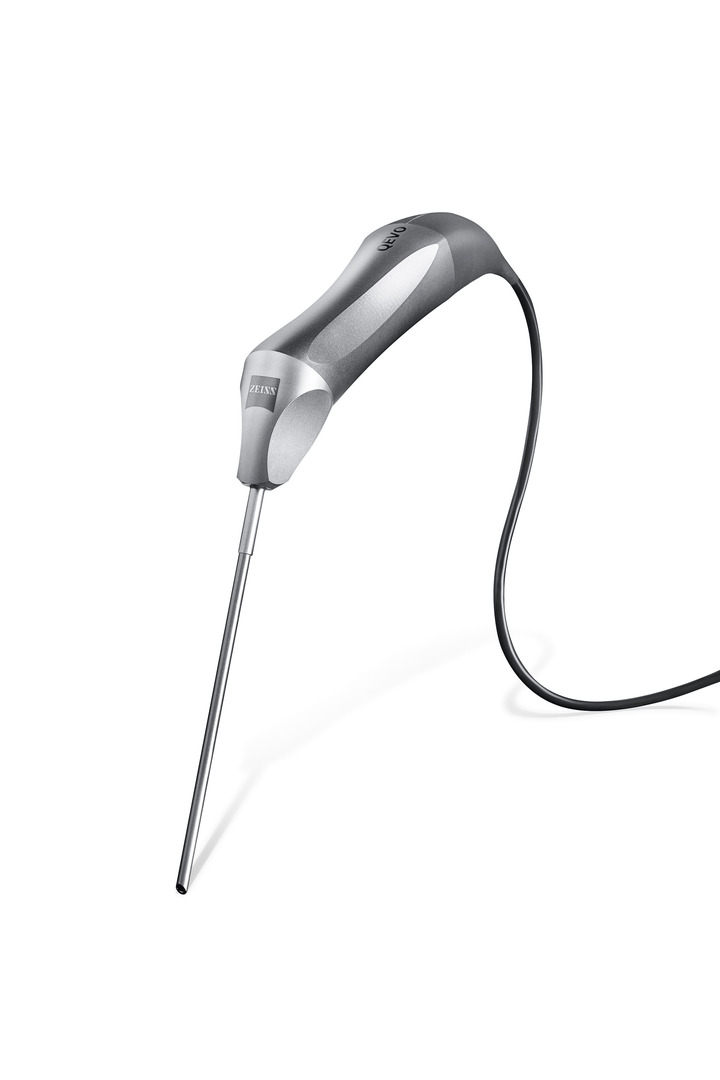 The QEVO Micro-Inspection Tool complements intraoperative microsurgical visualisation by visualising previously concealed areas. It helps in the recognition of structures that elude the direct line of sight, while also making areas visible that are hard to see, thus supporting better clinical decisions. Its angled design promotes safe use during insertion into the body and reduces the necessity of having to reposition the KINEVO 900 Robotic Visualization System, which fully integrates QEVO into its design.