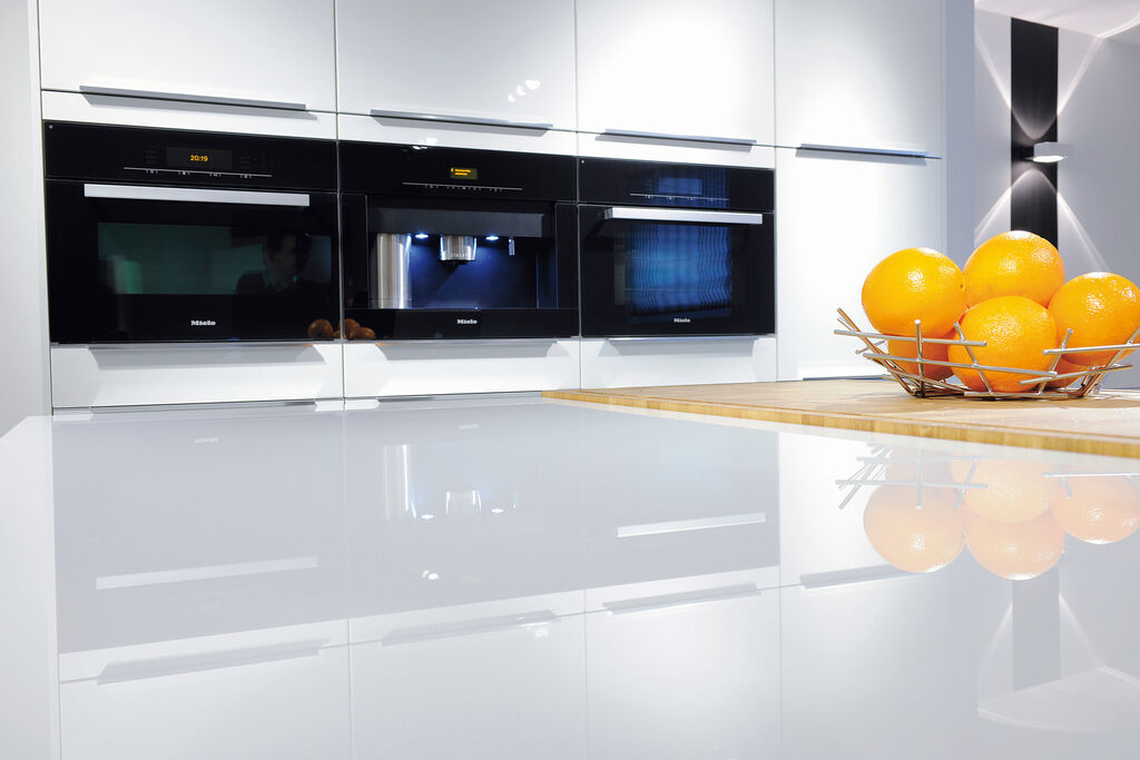 Quasar is a novel product consisting of purely mineral raw materials. Its very high strength as well as its resistance to acids and alkali set new standards compared to stone. The extremely dense and compact structure of Quasar makes it scratch-resistant. It also does not absorb water, so that impurities cannot penetrate. In contrast to traditional quartz stone, Quasar is also UV- and heat-resistant thanks to its mineral base. Possible application areas include wall cladding, floor slabs, office and kitchen countertops in private, commercial and clinical environments. Furthermore, its elegant white also creates interesting architectural highlights.