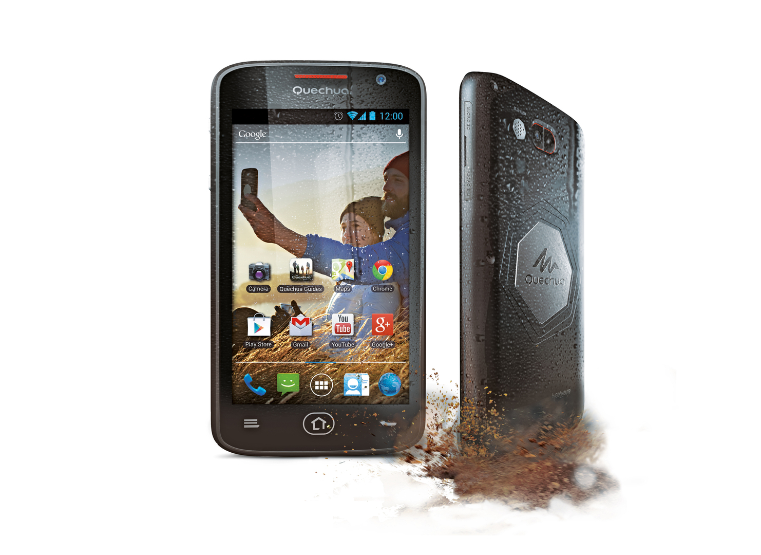 The robustly built Quechua Phone is targeted at climbers or outdoor enthusiasts in mountainous areas. Covered with a rubber coating, the Android smartphone is equipped with a powerful charger, and is shock- and dust-resistant, as well as weatherproof. Its 5” display, made of toughened glass, is legible even in sunlight and is suitable for reading maps. The Quechua Tracking App provides extra safety features such as GPS, altimeter and barometer.