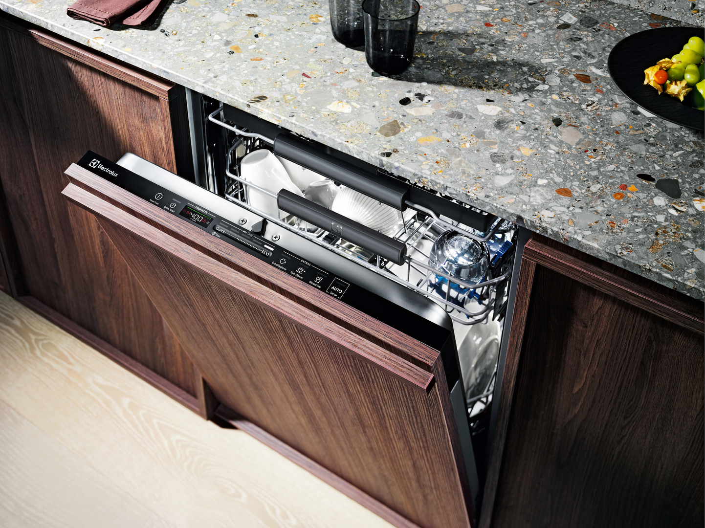 This dishwasher allows for the flexible selection of running time via a sliding regulator in a very intuitive and user-friendly way.