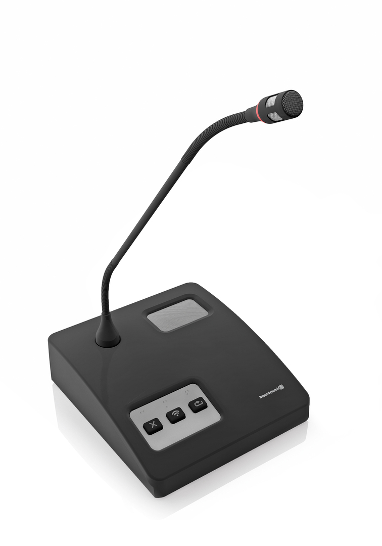 The Quinta wireless conference system has a high-quality, durable finish that is also used in the automotive sector. The keys are backlit for ease of use in darkened rooms. They are also framed with brushed stainless steel and embossed with Braille. The language of the keys’ functional description can be individually adapted according to each customer’s preference. The ready-to-talk mode is indicated by an illuminated ring integrated into the microphone head.