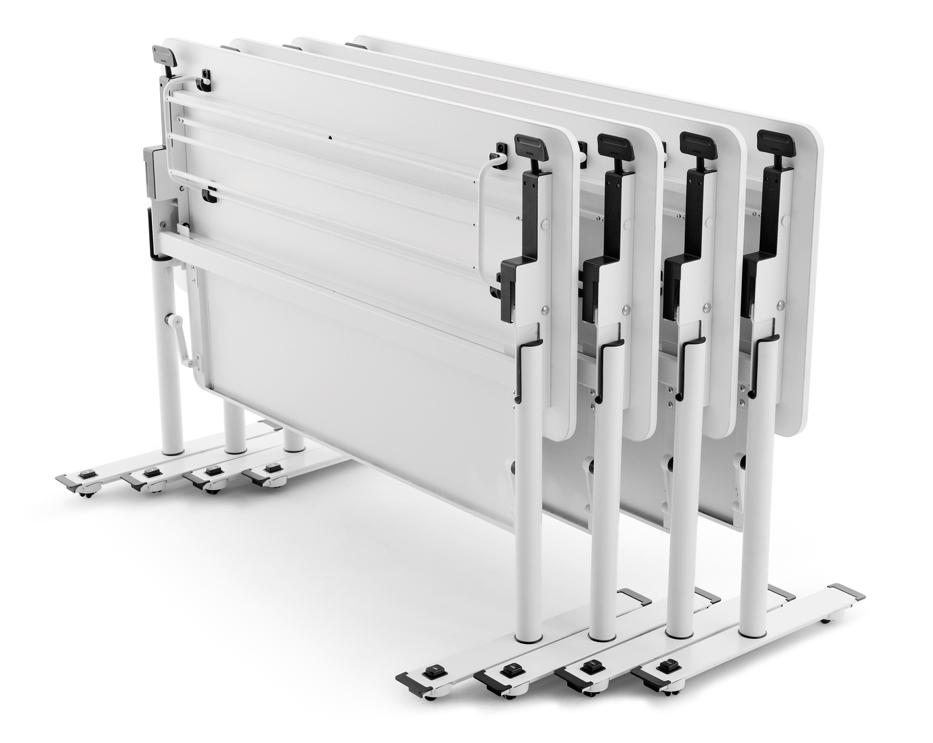 The R8.5 training furniture system presents a simple, contemporary and group-oriented design language and includes a training table, a lectern, a whiteboard and a cart. With its T-legs, the training table provides the user with enough freedom of movement, while the visible braking device and universal castors make it flexible and easy to operate. With the aid of a one-hand folding function, the tabletop can be easily stored.