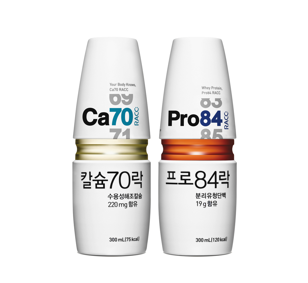 As an enriching functional beverage with ingredients like calcium and protein, which are beneficial for beauty care and joints, RACC is available in five different flavours. In order to convey the professionalism of this healthy drink, the label design focuses on numbers that represent the particular features of the product, lend the drink a highly distinctive appearance and underline its functional reliability. For a contemporary look, the design has been reduced to the essentials, while the use of different colours makes product selection easier.