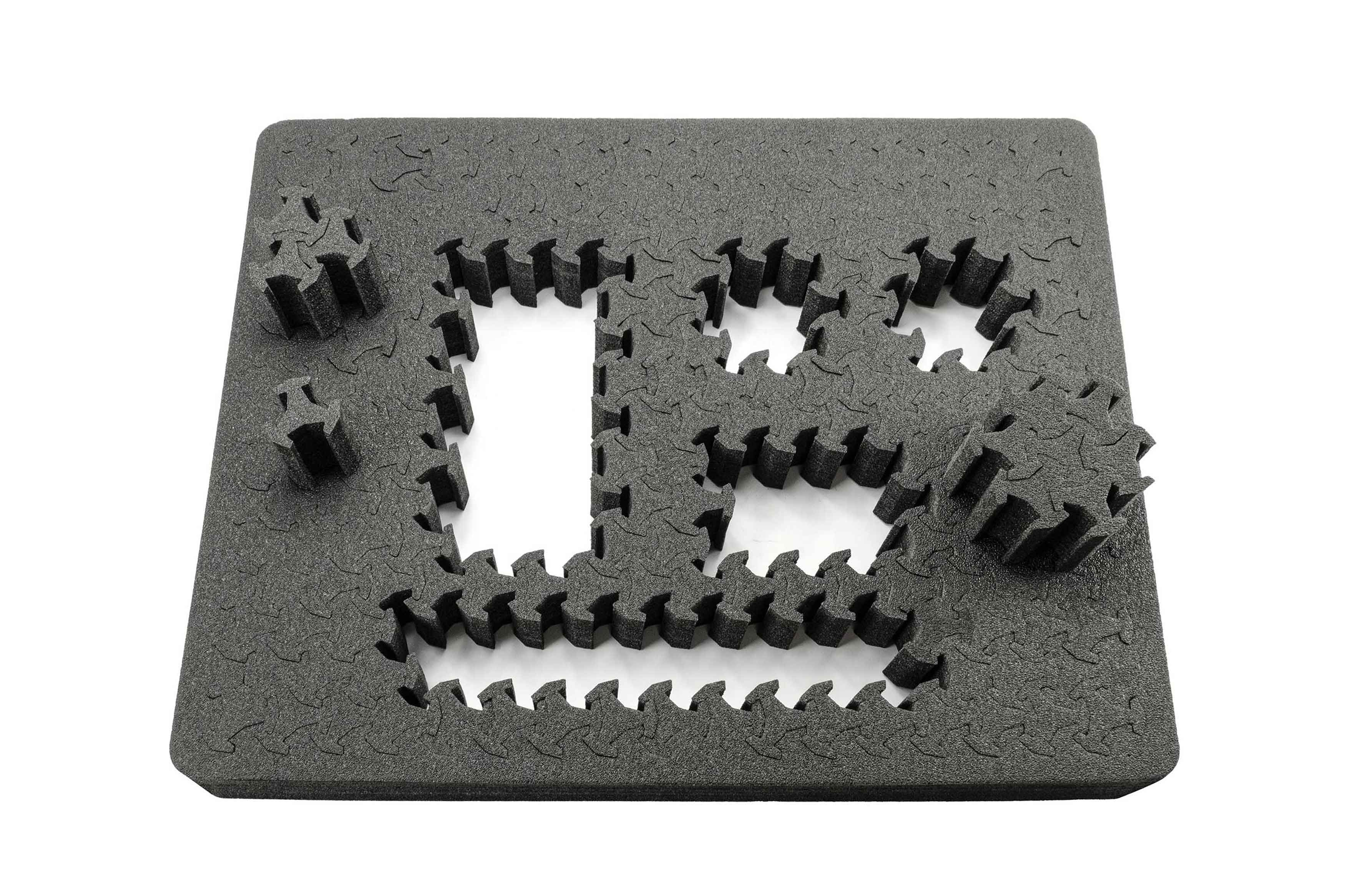 The RAGAR foam system has two main parts: a foam border and removable tessellating pieces. These pieces can be inserted in any direction, which simplifies customisation. Unlike standard pull-n-pluck foam, RAGAR pieces are reusable, waste-minimising, and they can be reinserted to correct or reset the configuration. Compatible with multiple brands, RAGAR ensures interchangeability between different pads, enhancing versatility and sustainability. Red Dot Award: Design Concept | Ready For Market | Luggage, Bags and Travel Accessories