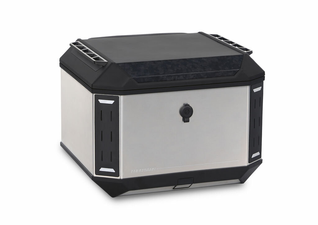 The Ranger motorbike cases are manufactured from a combination of high-strength polymers and aircraft-grade aluminium, making them particularly shockproof and crash-resistant. They also feature a waterproof sealing system, a self-locking hinge and a high-security lock, along with a patented quick-opening system that allows the cases to be separated from the motorbike at the touch of a button. The jury praised the manner in which the functional requirements were implemented in a discreet, yet robust construction with no visible rivets or screws.