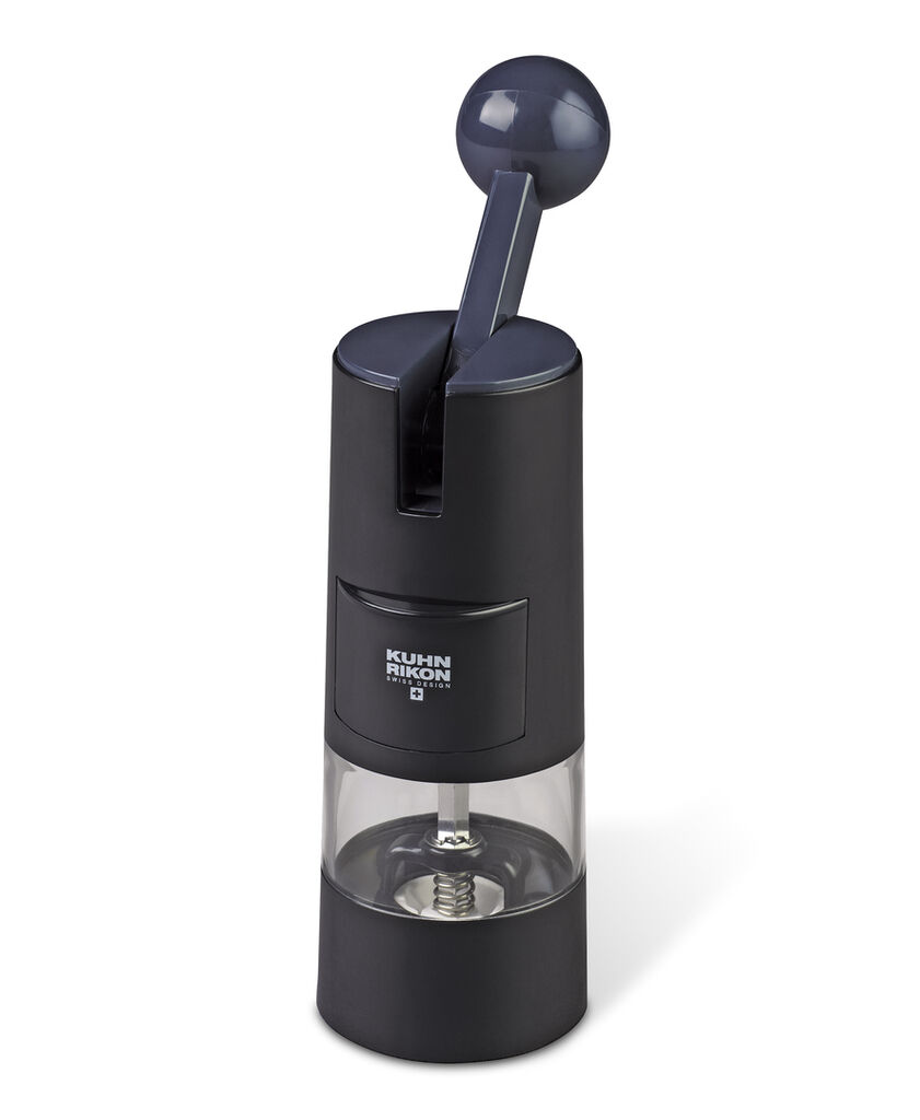 This spice grinder offers an overall picture that is focused on its function. Its mechanism, which features a ratchet handle, can be used for a variety of spices.