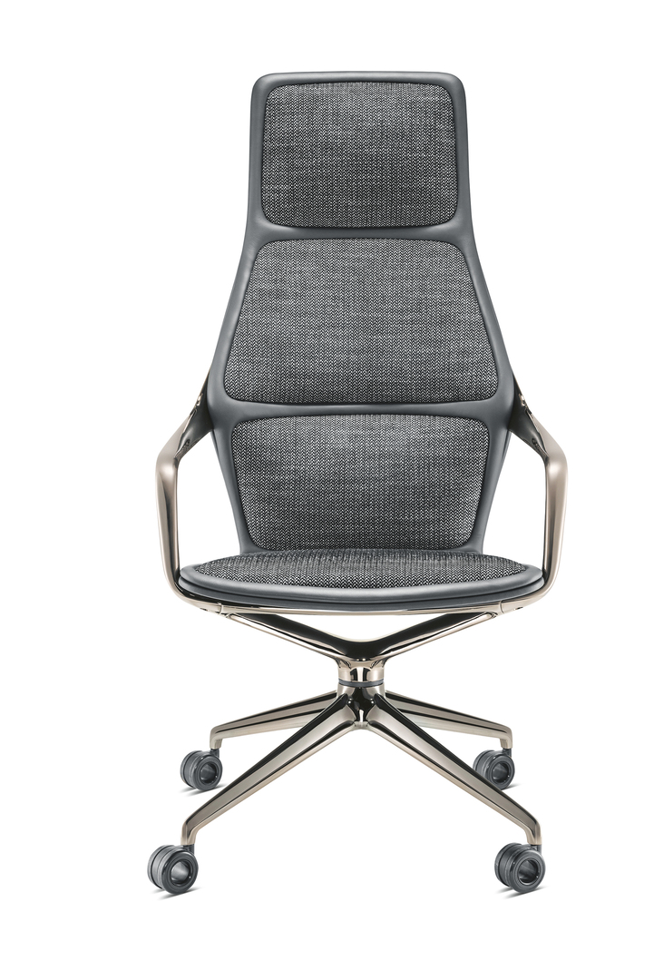With its high backrest and integrated ergonomics zones, the ray conference management chair offers special seating comfort. Three pads integrated into the backrest as independent zones can be covered with a different material than the seat shell. The radial-kinetic movement mechanism supports “moved sitting”. The die-cast aluminium armrests can be chrome-plated, polished or powder-coated in colour. The frame and fabrics can also be individually selected and varied.