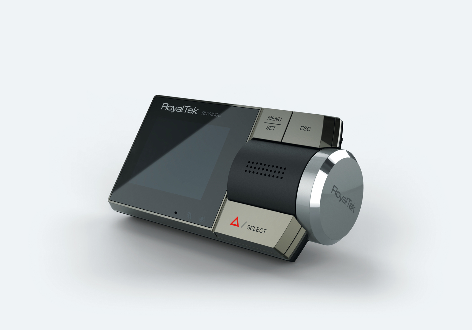 The RDV-1000 is an event data recorder with a 2.2” screen. It features GPS and G sensors to record event locations. With its asymmetric design and contrasting matte and gloss metal surfaces, the device evinces a technical and stylish feel.