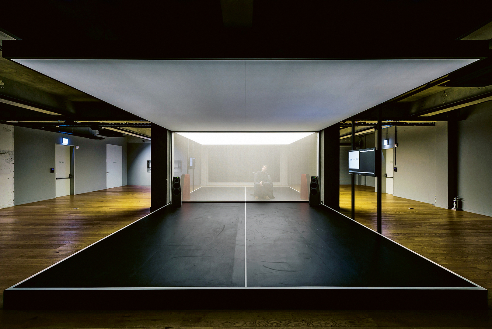 With “Feel the reverberation of sound” as its motto, this exhibition was conceived as a platform inspired by a table-tennis table. It invited visitors to sit face to face, with a thin cloth between them. Alternating lights illuminated the audience whenever the music changed. The audience had the option of participating as quiet listeners or as actors on stage in the light. They could experience continuous sound, either by listening to music while staying in the space or by creating an imaginary conversation between musicians inside the specific space. Thus, visitors could gain a new artistic experience through the act of creation.