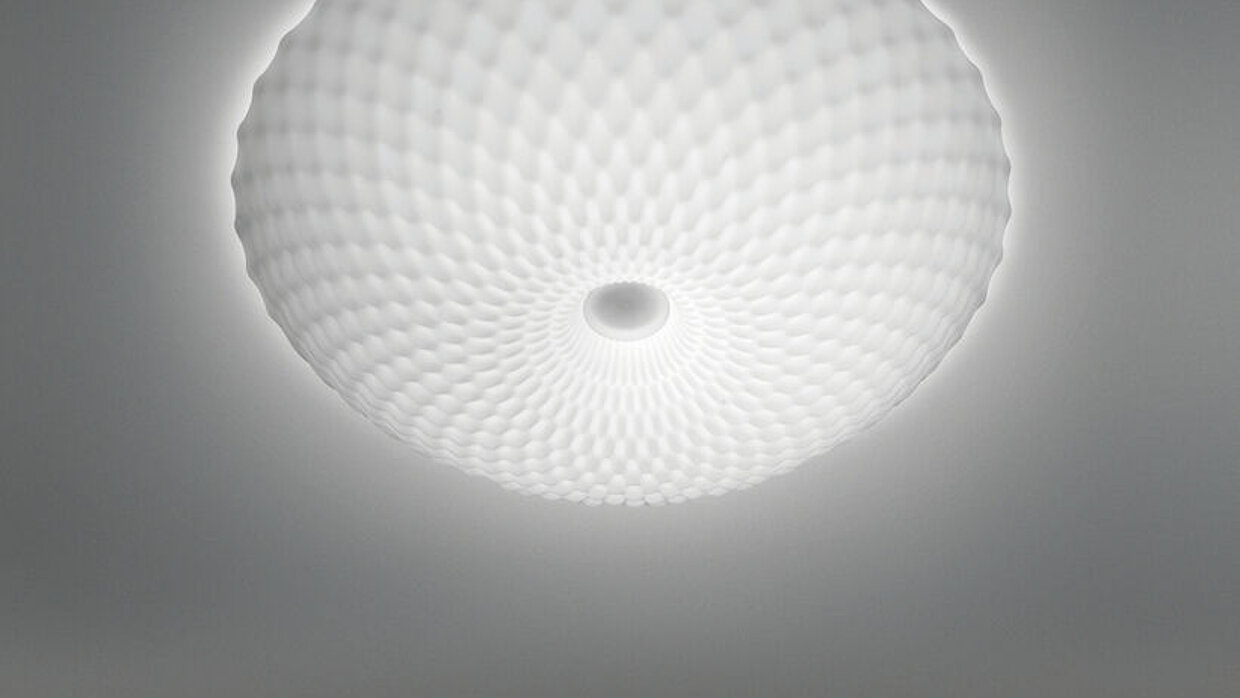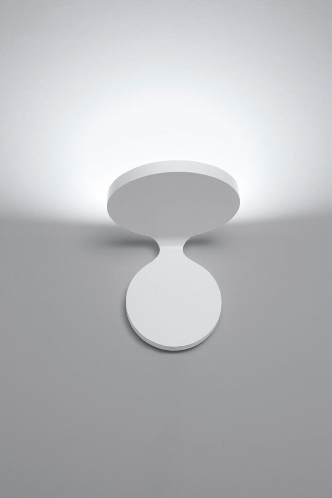 Rea is a wall lamp that is somewhat reminiscent of Star Trek‘s Starship Enterprise. Distinctive, soft contours characterise its overall appearance. The lamp consists of two disks of the same size made of lacquered aluminium. One of them is mounted on the wall while the other houses the LED light source. Rea comes in two sizes, 120 mm and 150 mm, and provides diffused, indirect light with an efficiency of 90 per cent.