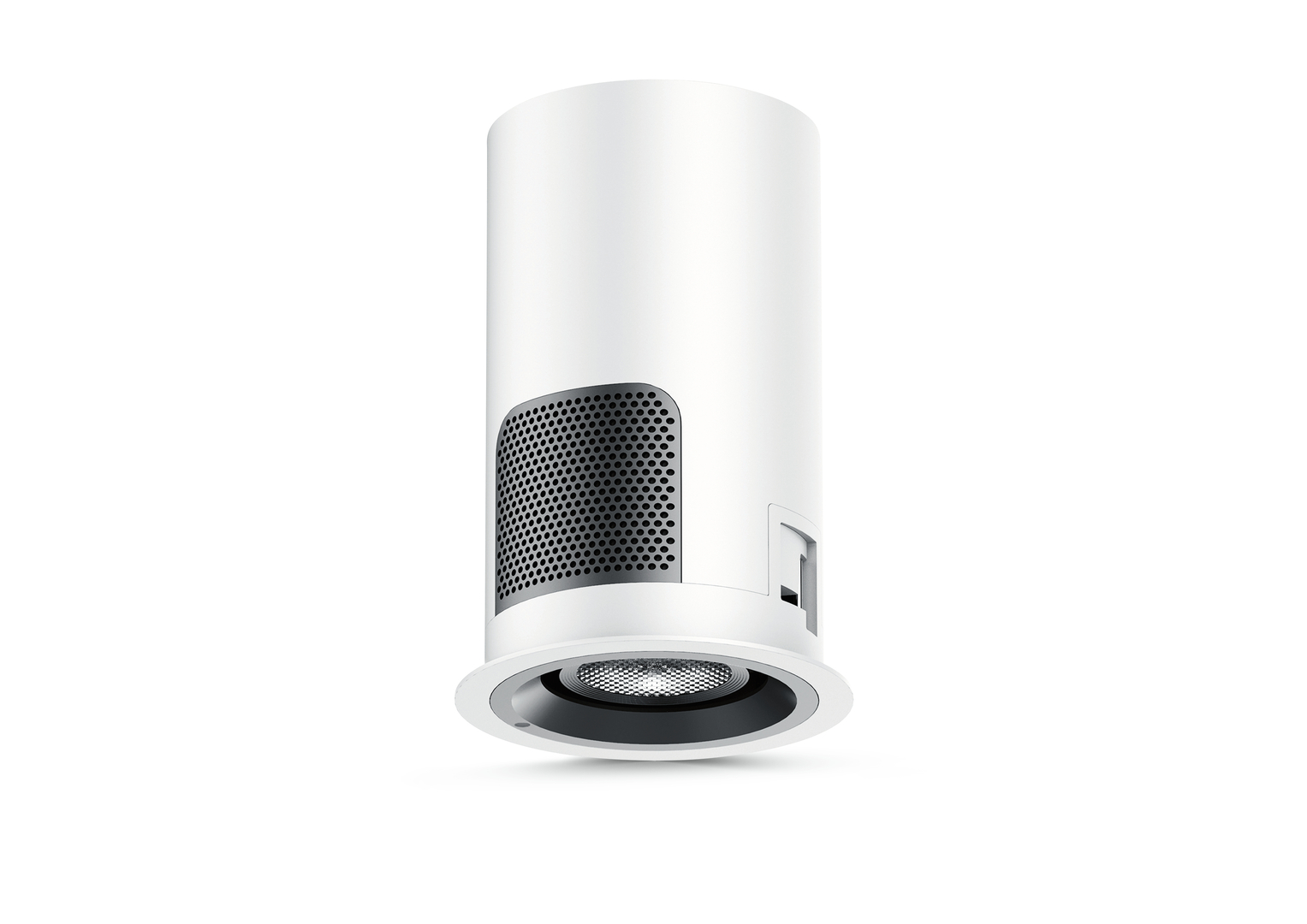 This recessed spotlight was especially designed for the lighting of dining rooms in high-end hotels. It is conveniently controlled by remote control or smartphone. The LED light source can be lowered and raised vertically to extend the lighting angle to a maximum of 360 degrees or to reduce it to 10 degrees. The compactly constructed body features symmetrical cooling grids on the side, which are adapted to the air flow direction for efficient heat dissipation.