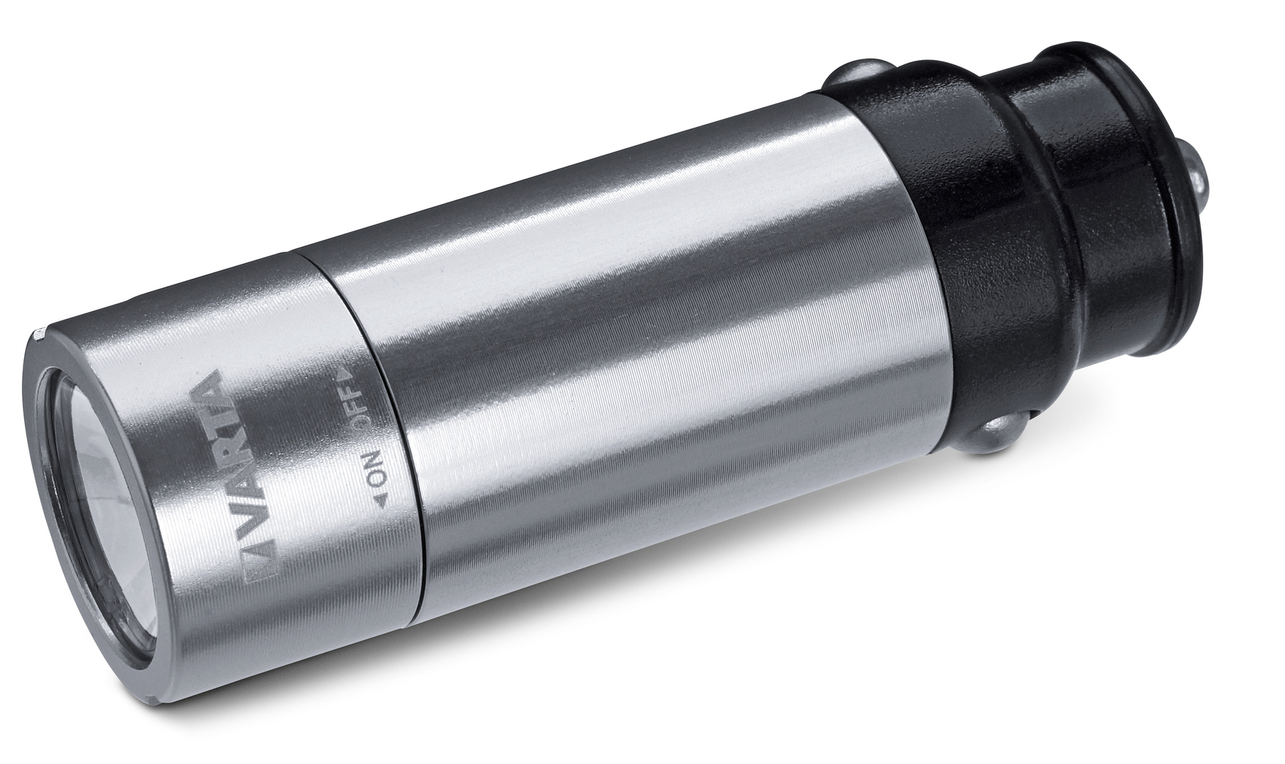 This mini pocket torch with elegant aluminium case is equipped with a 3.6 Volt Ni-MH 80 mAh rechargeable battery, which can be recharged simply from the cigarette lighter. With a length of 6.5 cm and a diameter of 2 cm, it fits in any compartment or on the dashboard and is thus always within reach. Fitted with a bright LED, the pocket torch shines as far as 27 metres.