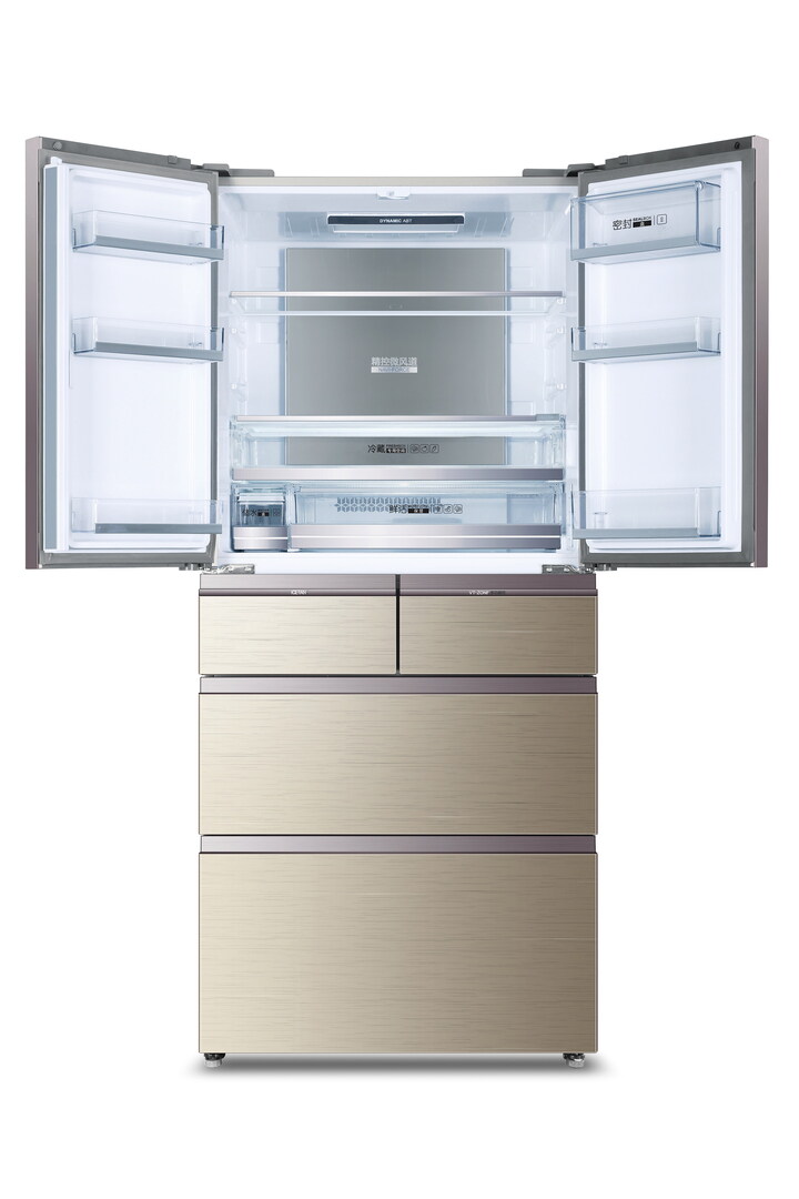 This French door fridge-freezer combination with four drawers provides a display showing real-time temperature control which can be quickly and precisely regulated, thanks to “Micro Air Control” technology. Furthermore, humidity and dryness can be adjusted in various cool zones. A superconducting pre-freezing pad allows fast freezing and defrosting; the appliance also has a multifunction zone and an automatic ice maker. The bottom drawer opens automatically.