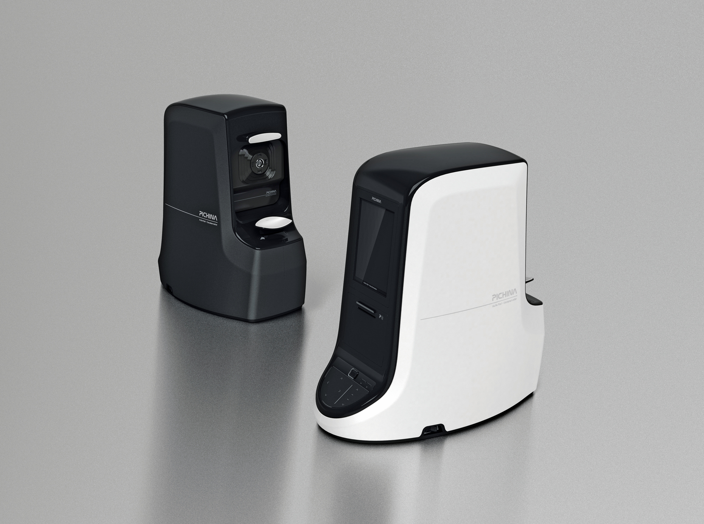 This device is a refractometer/keratometer used for checking eyesight, which features an automatic pupil tracking system. A minimalist design lends the device a distinct, elegant appearance.