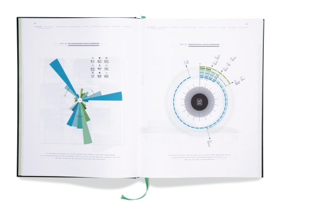In corporate annual reports clinical numbers turn into charts and diagrams, which aside from providing information are also intended to whitewash the actual facts. This publication illuminates, how the disclosure requirement turns into the art of self-representation and how closely the numbers are related to the company’s image. Clearly structured graphics, 1,300 images and a descriptive font emphasise the high information value of this publication, printed on special paper with phosphorescent colouring and embossing.