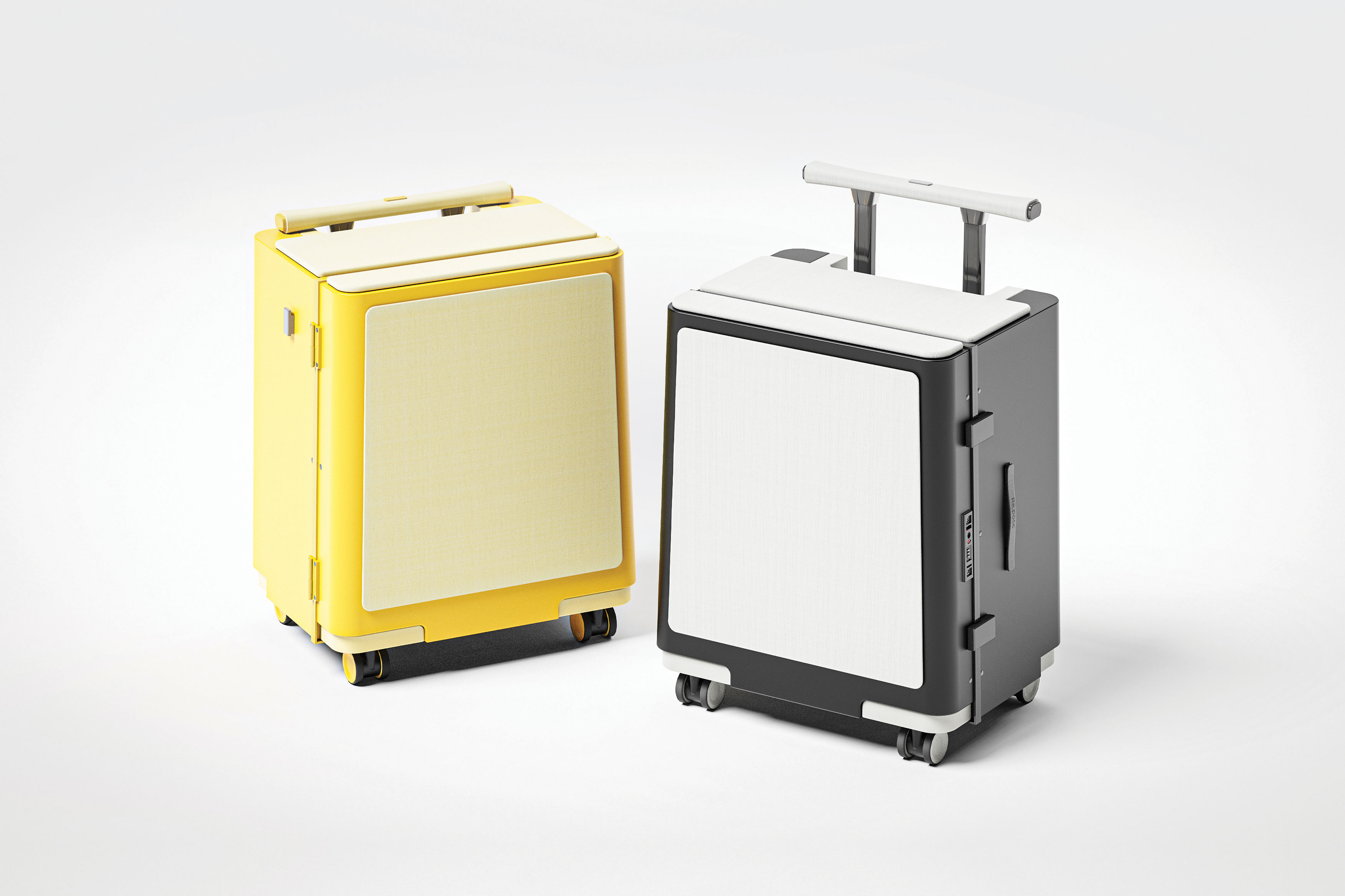 Repose is a sturdy suitcase with a flat top that doubles as a comfortable seat or a temporary table surface. Its trapezoidal structure distributes weight effectively to ensure stability, and an in-built spring-brake mechanism is automatically activated when the user sits, stabilising the wheels and preventing accidental motion. Repose combines mobility, convenience, and rest to enhance the overall travel experience.