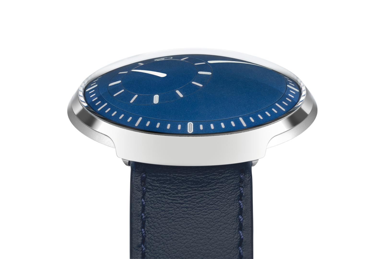With its slim, streamlined silhouette and patented cobalt blue dial with rotating discs, the Ressence TYPE 8 wristwatch is designed for ergonomic comfort and enhanced readability. The case back can be rotated to set the time and wind the mechanical movement. The case, made entirely of titanium, contributes to the watch’s low overall weight of only 42 grams, strap included. The jury described the Ressence TYPE 8 as “a simple, beautiful and at the same time innovative watch model with an unusual time display”. Its conclusion: “The gentle curves and extremely low weight make the watch a discreet and wrist-friendly companion.”