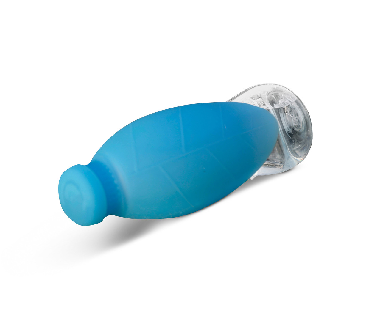 The Reversible Silicone Travel Feeder is a portable pet bowl for on the way. It does justice to the fact that it is often difficult to have pet food ready to hand. At the closure of the bottle-like vessel, it features a flap in the form of a leaf that can be unfolded. With the bottle turned upside down, the food is simply poured into it. The animal can thus feed as usual from a dish. The idea for the leaf is inspired by nature and underscores the relationship that human beings have with their pets.