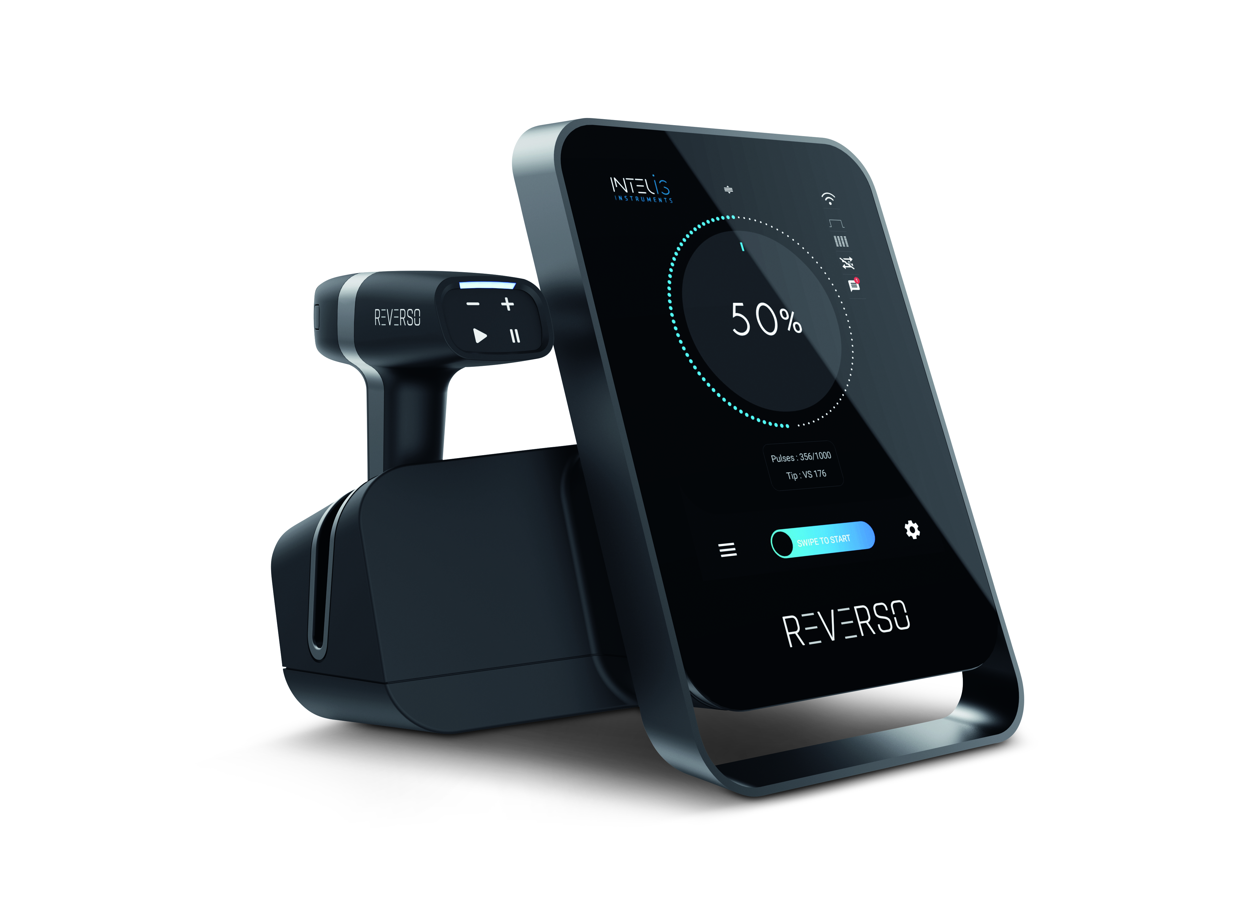 Reverso is a fractional facial treatment device, used for gentle skin resurfacing. It can be controlled via a large touchscreen, as well as a touch panel attached to the applicator, which provides a good overview during use. The intuitive user interface, defined by its pleasing contrasts and modern colour combinations, was designed to optimise both convenient and secure use, as well as clinical results.