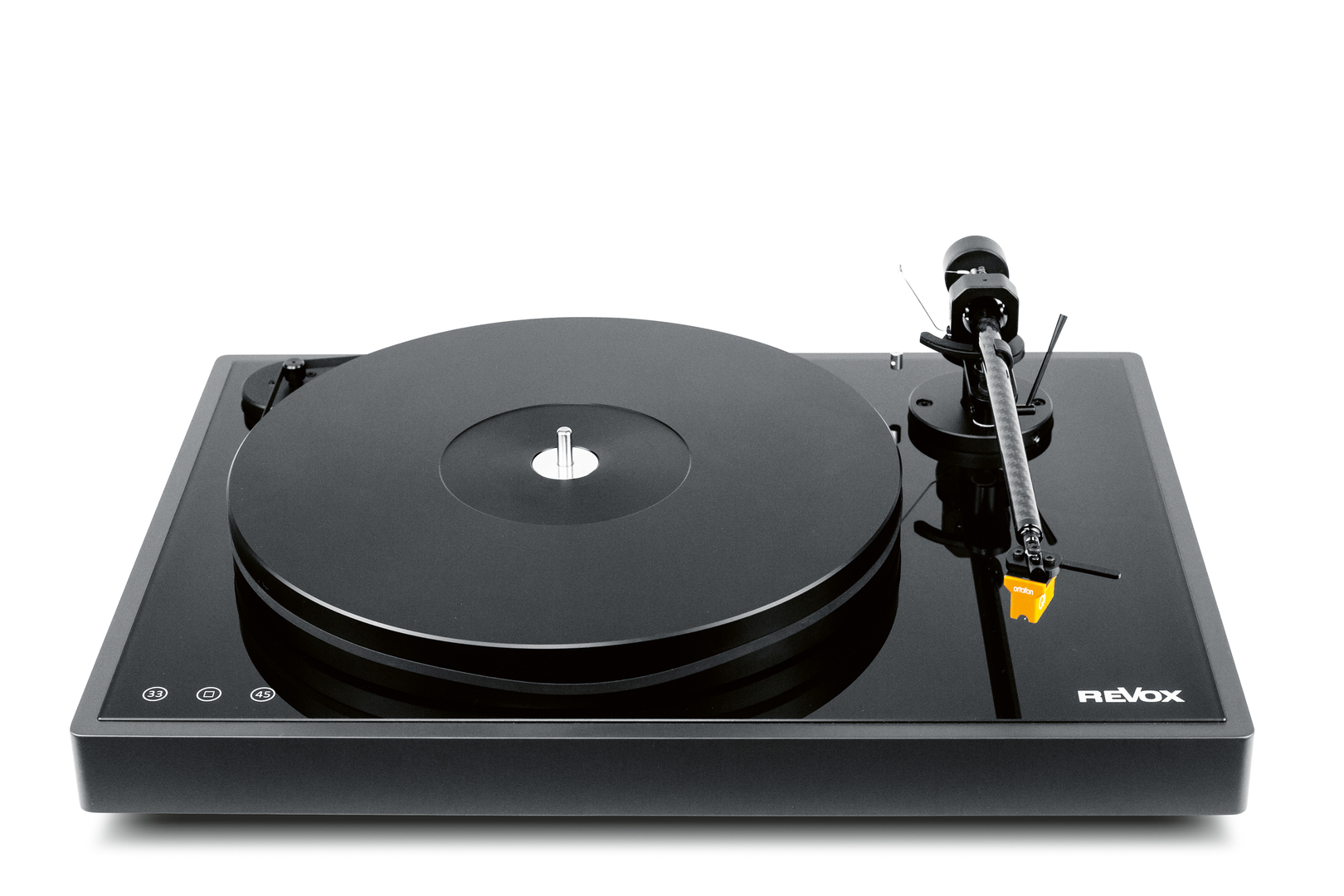 The Revox STUDIOMASTER T700 is a high-end turntable with integrated MC phono preamplifier. It features electronic PLL speed control with a contact-free optical sensor. With its backlit touch sensors on the glass plate, the turntable is convenient to operate. The tone arm tube is made of premium carbon fibre, and the tone arm cord is soldered directly to the preamplifier by hand. The preinstalled Ortofon Quintet Bronze MC pickup completes this high-end product.