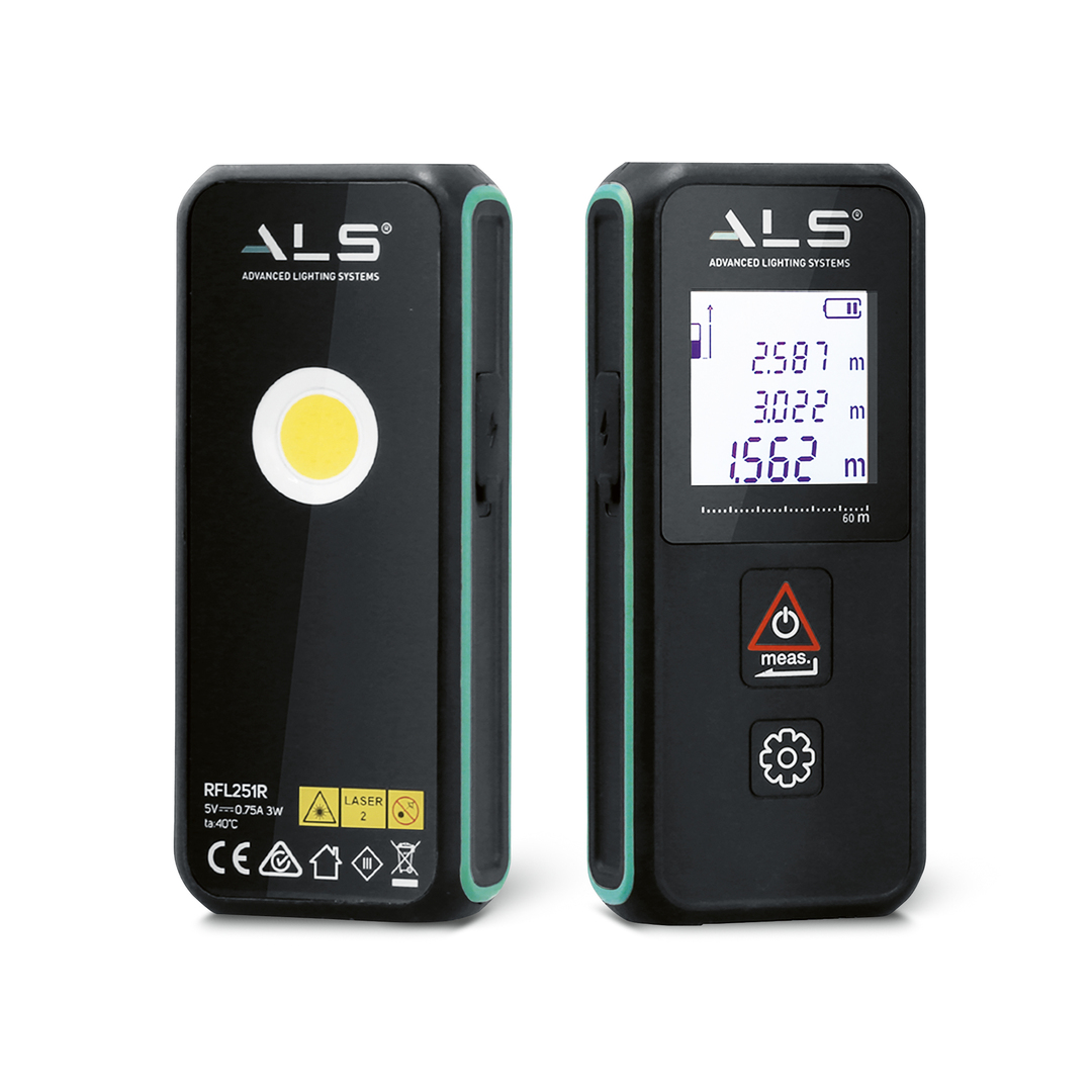 The battery-powered RFL251R combines a very bright LED work light with a laser rangefinder, resulting in a compact unit. The handy and robust device, which allows for unit conversion between feet, inches and metres, is designed for single and continuous measurements of distances up to 60 metres in the construction industry. In addition, the instrument can calculate the distance between the lowest and highest point of an object with an accuracy of 2 mm. Its data memory is able to store up to three measurements.