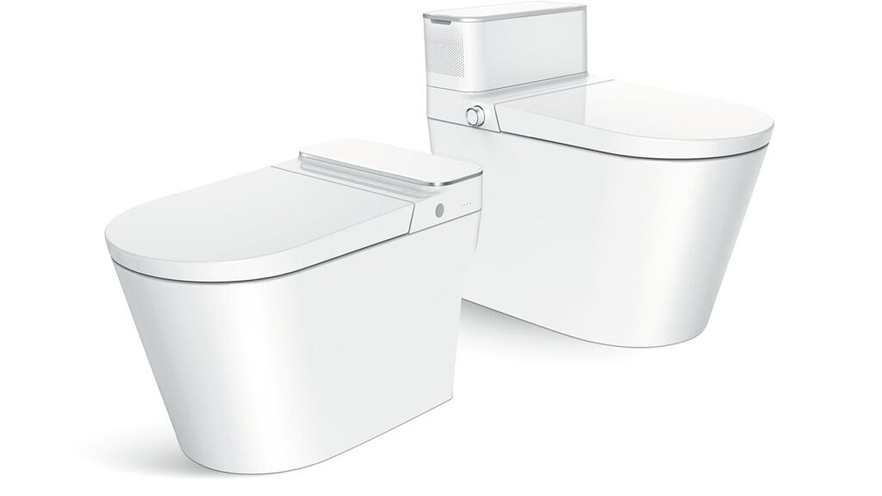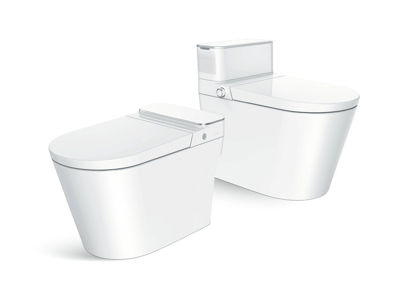 The smart toilets of the Rhea series can be controlled via voice commands thanks to AI technology and an integrated voice recognition system. In addition, a remote control, an LCD touchscreen and an app are the possible user interfaces. Available in three versions of different heights, the toilet is designed to use components for all three designs, which reduces the waste of resources. The tall versions are equipped with an innovative fresh air system that can filter indoor air.